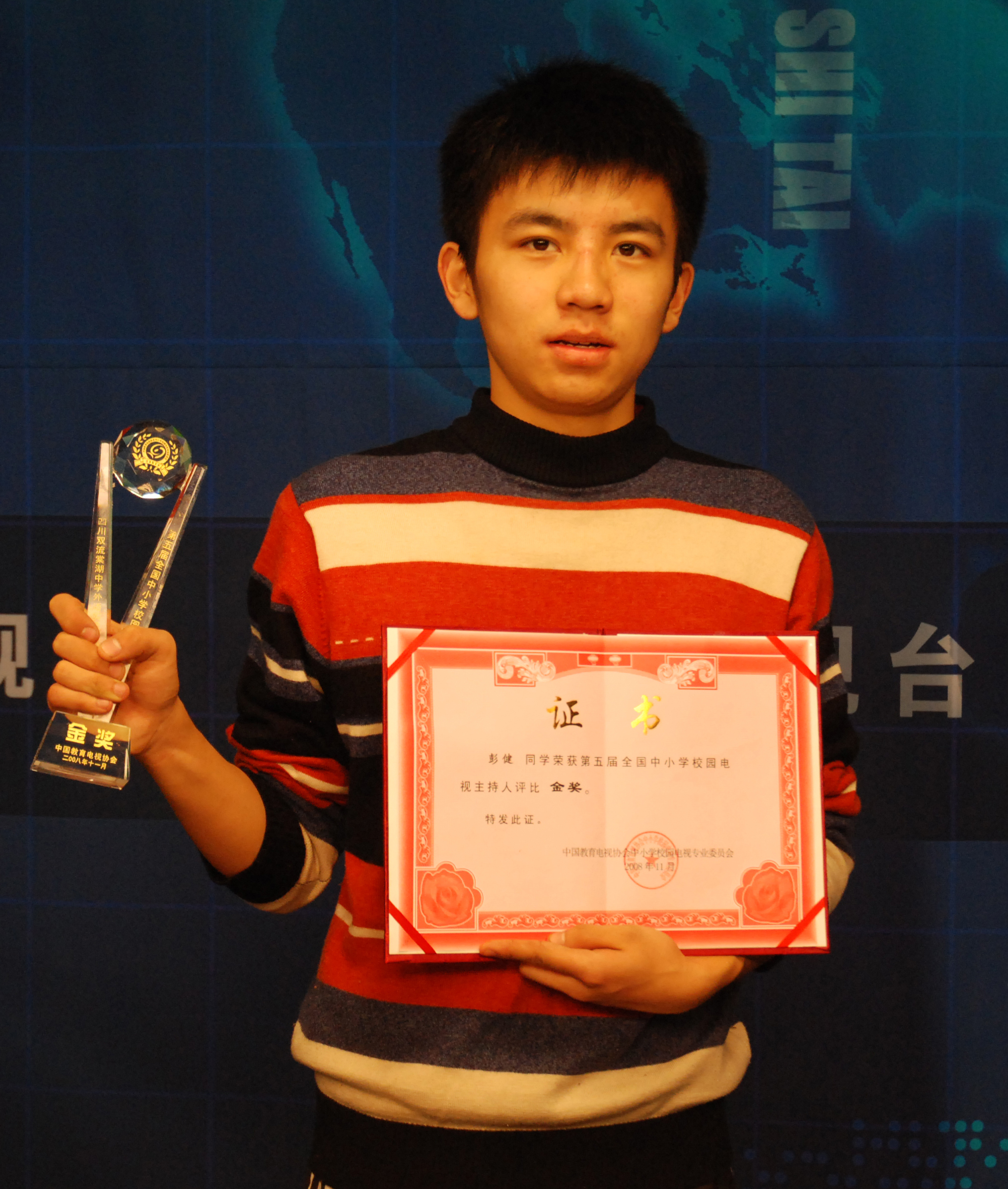 彭健同学曾荣获四川省第三届中小学电视大赛主持人金奖,